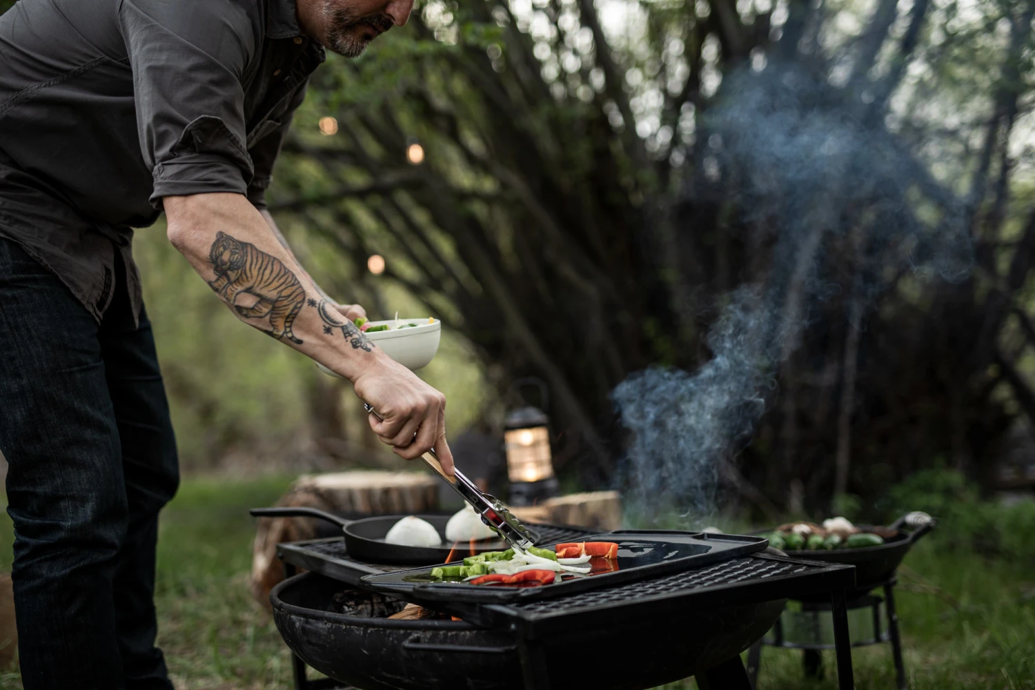 Een must-have voor op de BBQ, Cowboy Fire Pit Base en in de keuken. Dubbelzijdige gietijzeren bak/grillplaat.