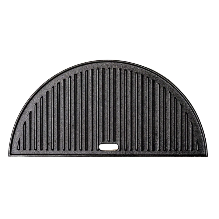 Het halvemaanvormige gietijzeren rooster, geschikt voor de Bestcharcoal Kamado Large, bestaat uit een vlakke- en geribbelde zijde. Door de verschillende structuren kunnen de beide zijden op eigen wijzen gebruikt worden om zo nog veelzijdiger te kunnen koken, bakken & grillen! Het gietijzeren rooster is bestand tegen hogere temperaturen en is vervolgens in staat deze hoge temperaturen vast te houden.