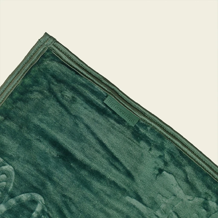 De fleecedeken is afgewerkt met een glanzende bies en voorzien van een rubberen label met het Big Green Egg logo. Je kunt de deken in de wasmachine op 30 °C wassen.