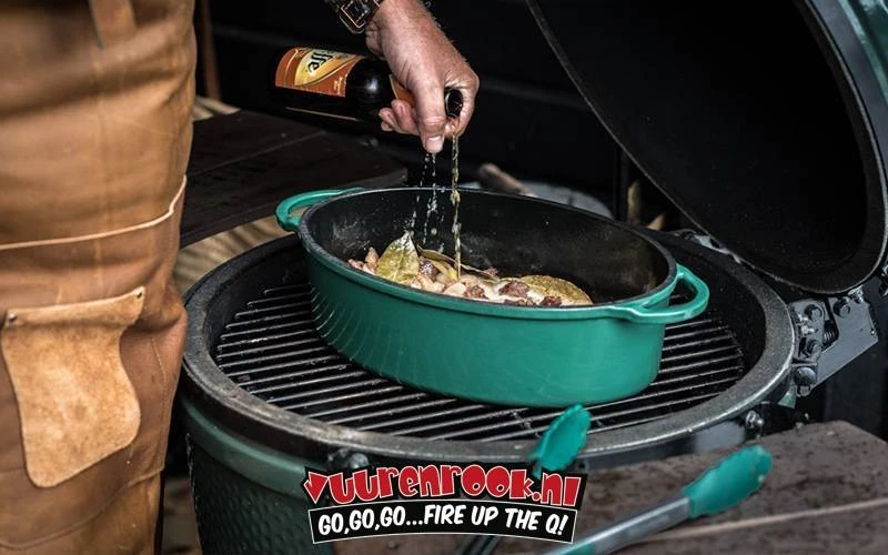 De Green Dutch Oven voor de Big Green Egg is met recht een zware jongen. Deze geëmailleerde gietijzeren braadpan stooft, suddert, kookt, bakt en braadt. Een echte allrounder dus! Je kunt de deksel van de Green Dutch Oven apart gebruiken als ondiepe bakpan of als vorm voor cakes en desserts. De Green Dutch Oven is rond en ovaal beschikbaar.
