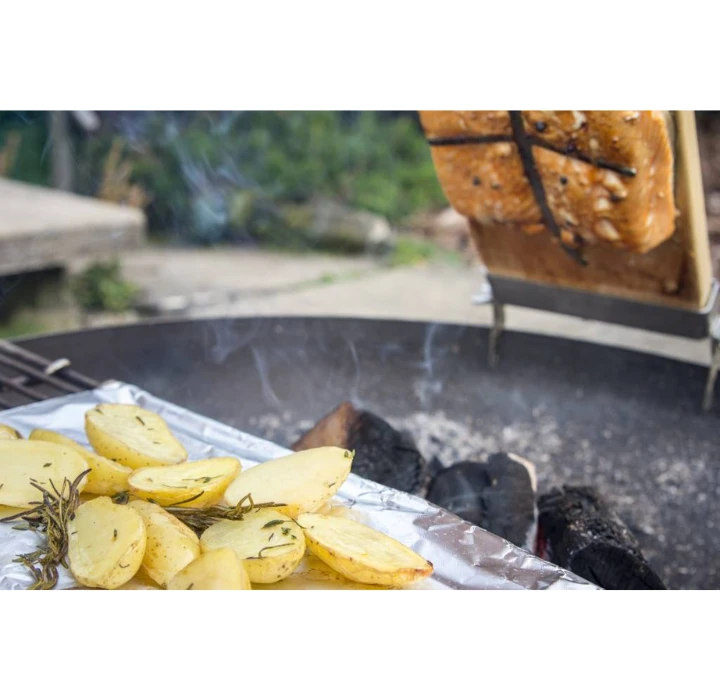 Met een geschikte grill of grillpan is de HARRI perfect voor het grillen van vlees en groenten. Of je maakt een heerlijke zalm door hem te roken op een rookplank. Of hang je goulashketel boven het vuur en geniet van je zelfgemaakt goulash.